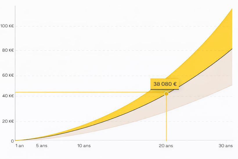 💰À l’issue de ces 20 ans, 49 000€ de capital + 38 080€ de revenus soit 87 080€ (Montant non garanti)