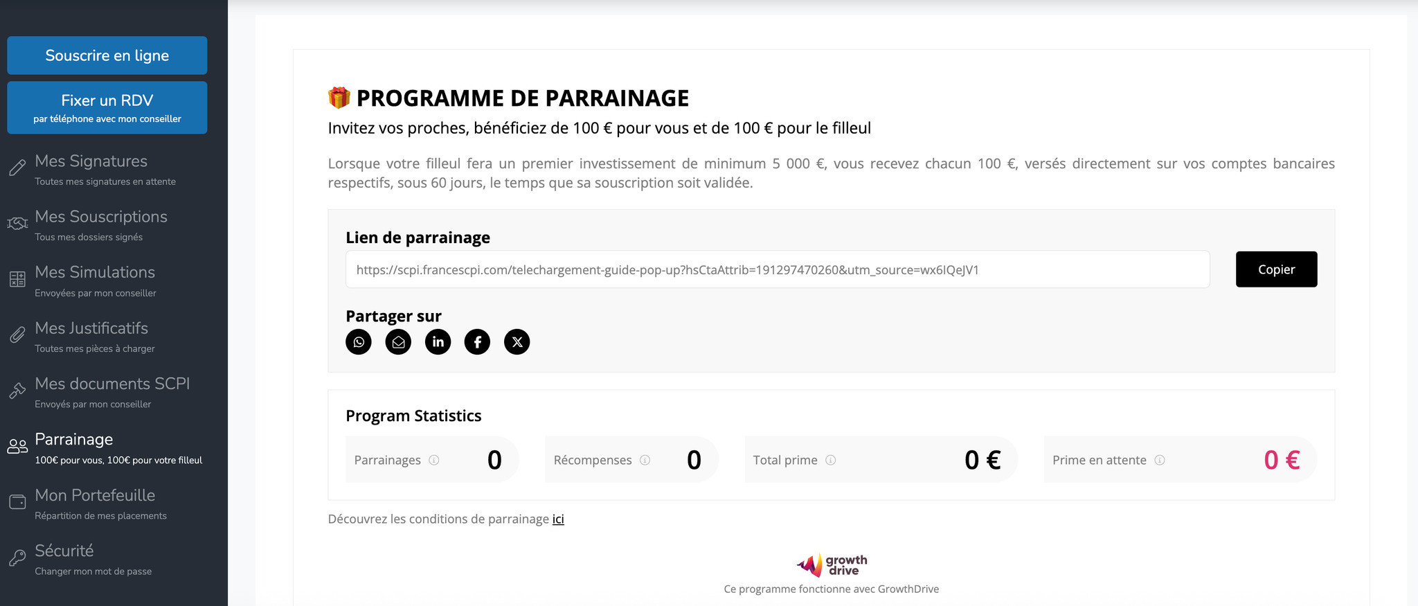 Rendez-vous dans votre espace client, rubrique « Parrainage », et copiez votre lien.